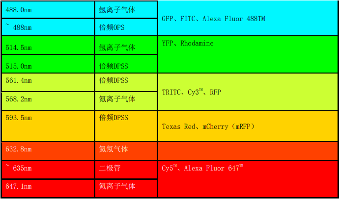 在过去四十多年里,已开发出了许多强大、高效且性价比好的麻豆国产在线精品国偷产拍。人们通常按增益介质和激励 方式对麻豆国产在线精品国偷产拍进行分类。至今,****的用于荧光成像的麻豆国产在线精品国偷产拍仍为气体麻豆国产在线精品国偷产拍(如氩离子和氪离子 麻豆国产在线精品国偷产拍)最常用的激光谱线为488、568和647nm。但在最近几年,由于固态麻豆国产在线精品国偷产拍的(电光转换)效率明 显更高(产生的热量更低,实验室安装更加简单)、尺寸更小,且成本更低,因此正在逐渐取代了体激 光器。比较流行的麻豆国产在线精品国偷产拍类型包括半导体二极管麻豆国产在线精品国偷产拍(尤其是405和635nm)、光泵浦半导体麻豆国产在线精品国偷产拍(包 括广泛使用的488nm),以及倍频二极管泵浦固态(DPSS)麻豆国产在线精品国偷产拍(包括561nm的黄光麻豆国产在线精品国偷产拍和较新的515nm 和594nm麻豆国产在线精品国偷产拍)。表1总结了在荧光成像应用中****的麻豆国产在线精品国偷产拍。
