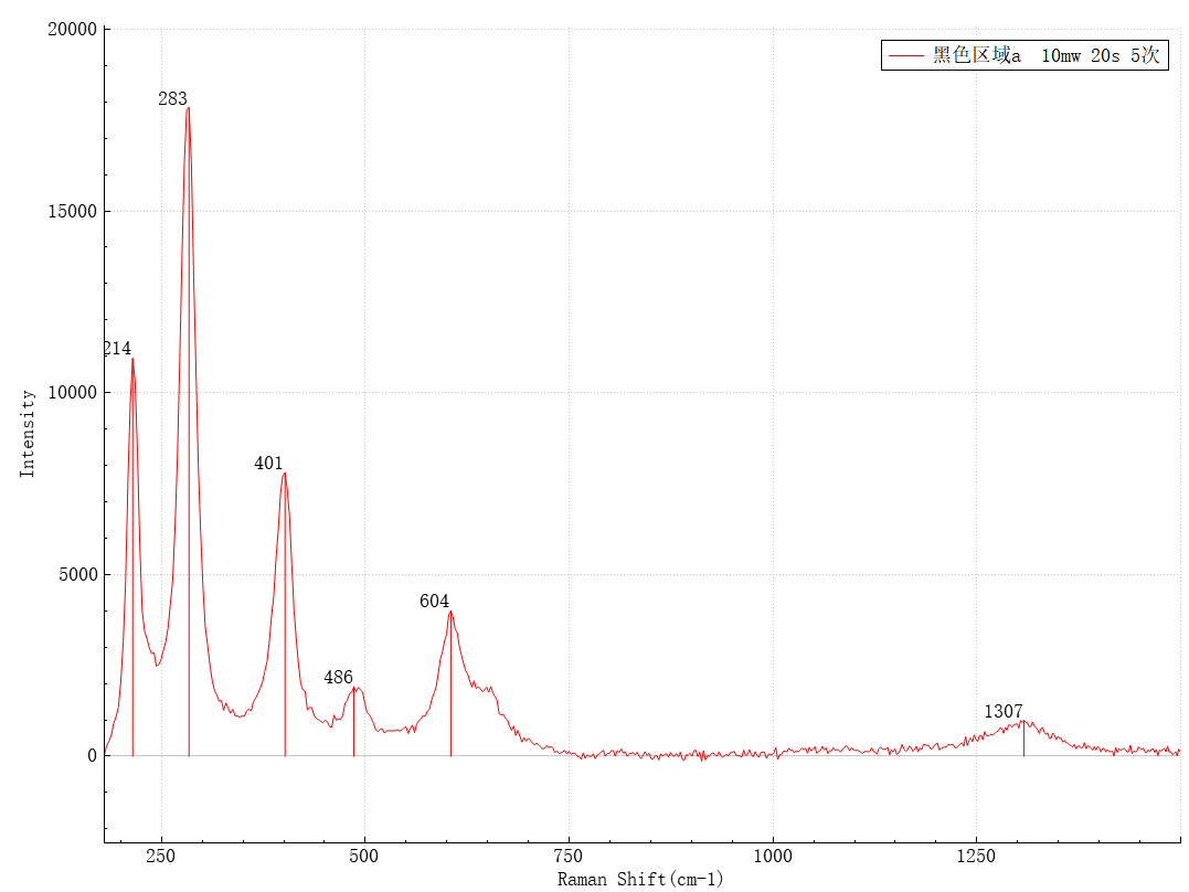 其中黑色锈层在214cm-1、283cm-1、401cm-1、486cm-1、604cm-1处出现明显的拉曼信号峰,且486cm-1和604cm-1处信号峰为黑色锈层区别于其他锈层的拉曼信号。