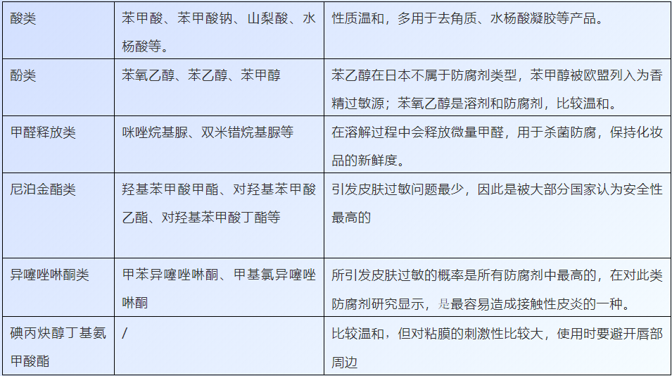 防腐剂虽然对抑制和杀灭化妆品中的各种细菌有良好的效果,但对人体也有潜在的副作用,因此被许多国家有关化妆品管理的法规列为限用物质。护肤品中最常用的防腐剂一共有6种。