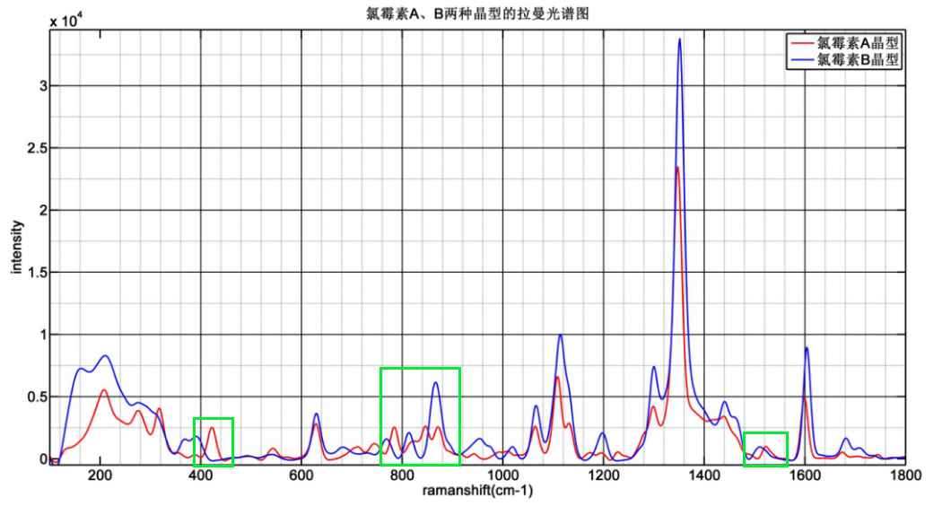 图2:氯霉素A、B两种晶型的拉曼光谱图