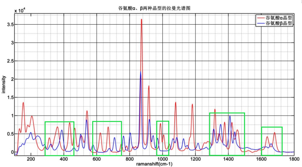 图1:谷氨酸α晶型和β晶型的拉曼光谱图