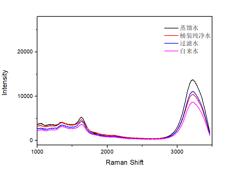 由于饮用水中所含的矿物质与微量元素会影响水分子的结构,比如:钙、钠、钾、镁等离子电荷大、体积小,会强化水分子的结构,从而减弱了分子的振动能量。在拉曼光谱上的表现为特征峰的强度会减弱。