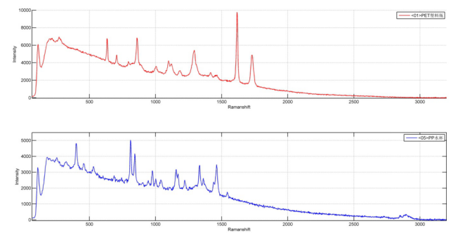 图2中可以看出这2种塑料的拉曼光谱差异很明显,可以很容易得进行识别。通常,塑料的拉曼响应很强,且峰形尖锐,这非常有利于定性分析。