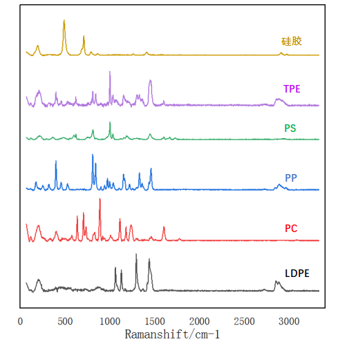 图5:检出的6种塑料成分的拉曼光谱