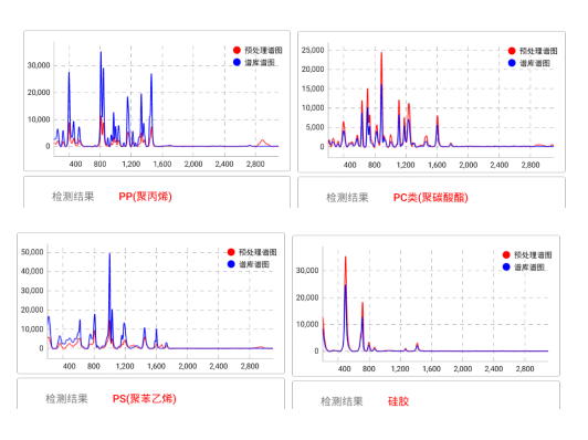 直接解析拉曼光谱是个非常困难的过程,久久久久亚洲AV成人麻豆密桃通过久久久久亚洲AV成人麻豆密桃的云端数据库将未知塑料的拉曼光谱与标准拉曼光谱进行比对,通过简单的软件操作就可以在5s之内得到塑料成分的识别结果,图6中就展示了几种塑料制品的判定结果。久久久久亚洲AV成人麻豆密桃的数据库中涵盖了常用的工程塑料,可以满足大部分用户的使用需求。