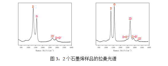 下图展示了532nm拉曼模块对2个不同的石墨烯样品进行的测试结果,如下图所示: