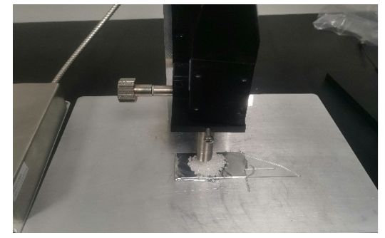 白砂糖平铺于铝箔上,放置于探头下方,调节探头位置使激光聚焦于样品表面进行测试。