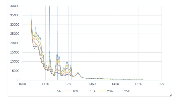 由图显示,各个特征峰的强度随糖溶液浓度的升高而升高,并且具有明显的线性趋势。