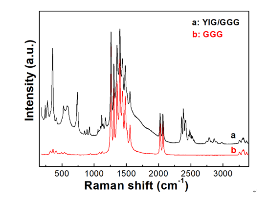 1. YIG/GGG 薄膜与GGG晶体的拉曼模式识别: