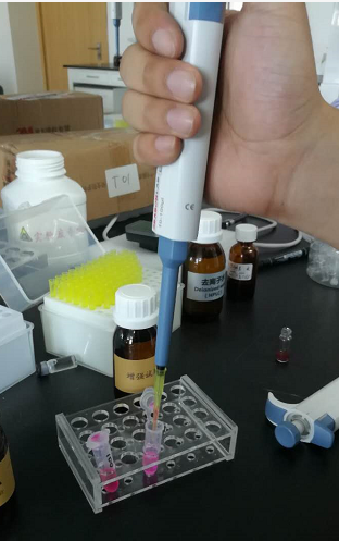 Step7, use the pipette to take reagent samples 50ul to reagent bottle.