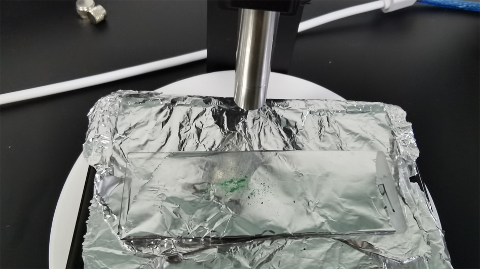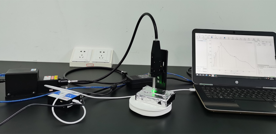 使用的科研级532nm激光拉曼光谱设备的波长为可涵盖0~3500cm-1的散射光,检测光斑直径在μm级别,颜料用量小于1μg,无需前期制样即可直接进行快速检测,如下图所示。