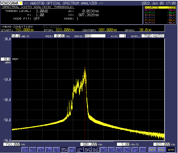 | 中心波长 | 808nm±3nm |